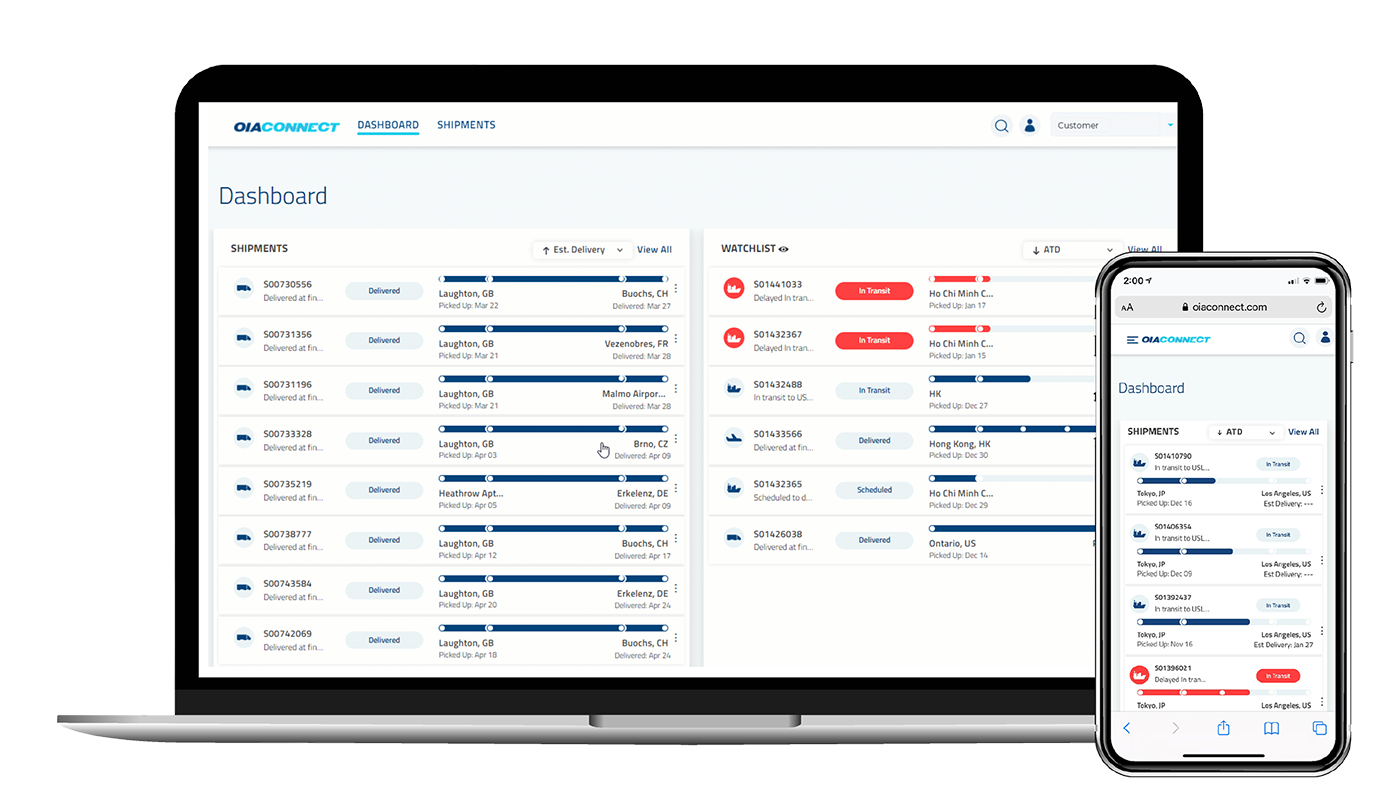 OIA Global offers end-to-end cargo track and trace through an electronic suite of supply chain visibility tools led by our award-winning product OIA Connect. This real-time, easy to use cargo tracking tool links all the various touchpoints in your supply chain: suppliers, carriers, customs authorities, and final customers.